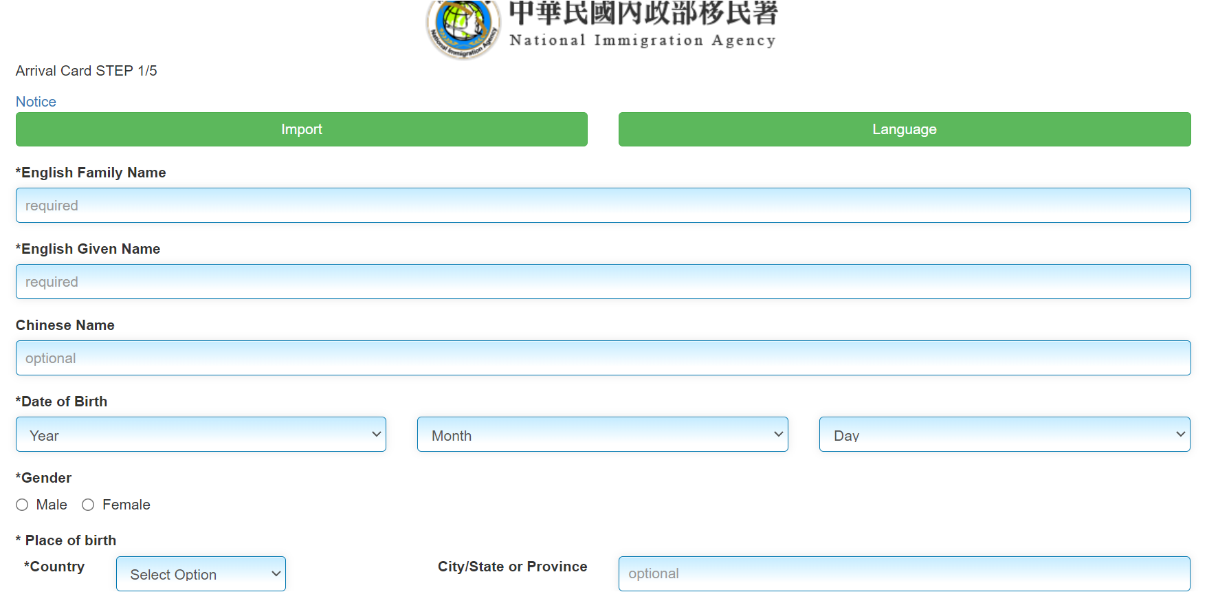 출발지는 대만으로 출발한 도시를 영어로 입력합니다. 예를 들어, 서울은 "Seoul"로 입력합니다. 도착일자는 대만에 도착하는 날짜를 일-월-년(DD-MM-YYYY) 순으로 입력합니다.