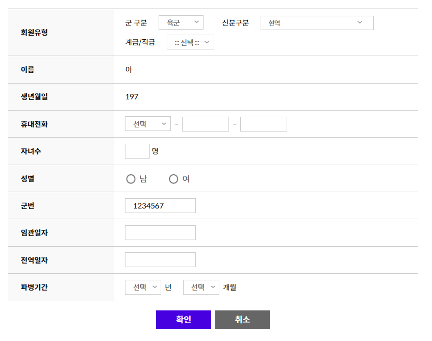 본인 인증: 가입 시 현역 군인, 군무원, 예비역 등 본인을 인증할 수 있는 절차를 거칩니다. 주로 휴대폰 인증 또는 국군복지단에서 발급하는 인증번호를 통해 본인 확인이 이루어집니다.