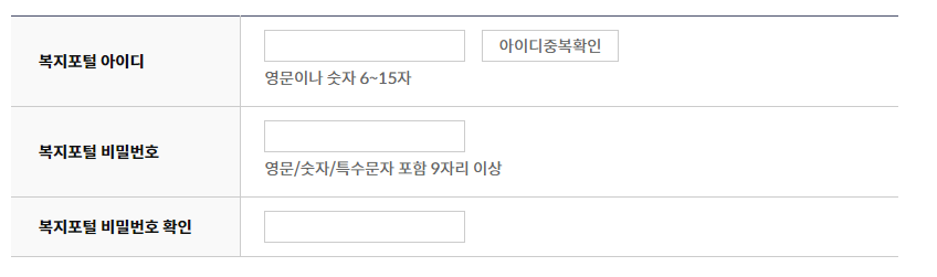 개인 정보 입력: 이름, 생년월일, 주소 등 기본 정보를 입력하고, 아이디와 비밀번호를 설정합니다.