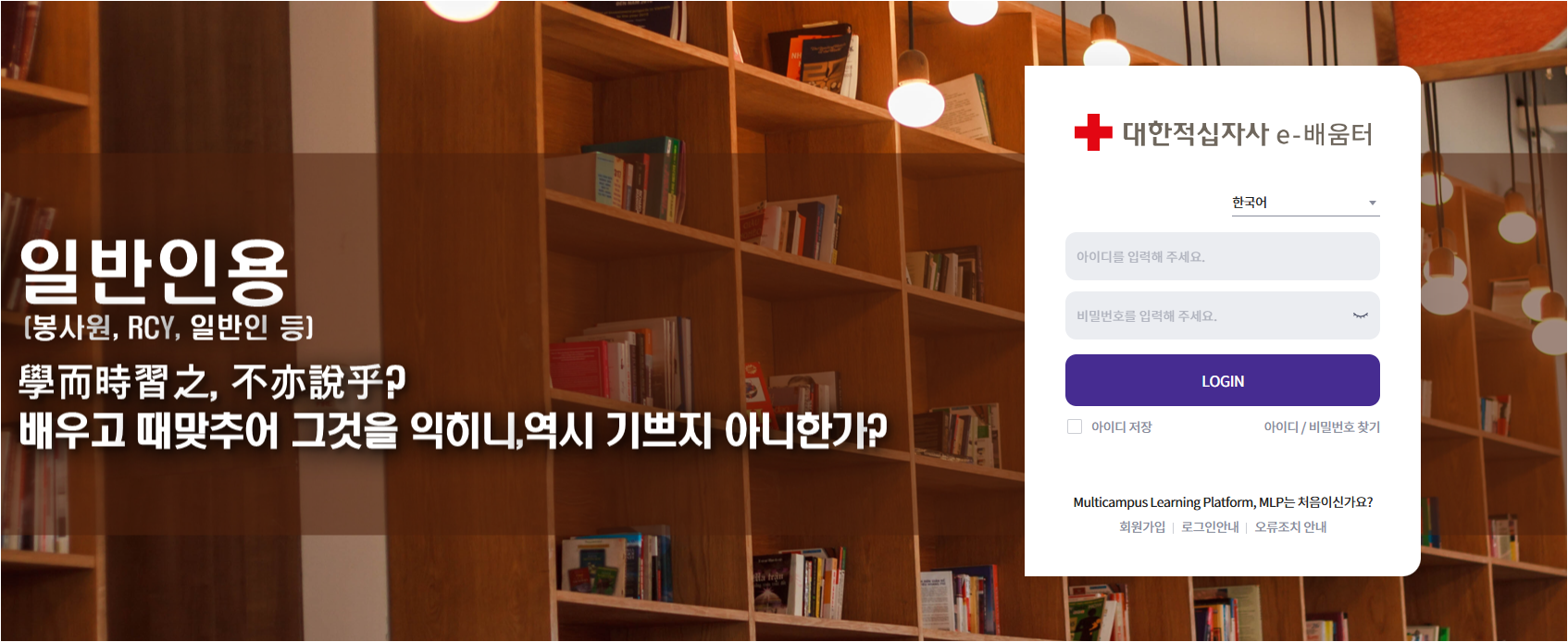 대한적십자사 e-배움터 : https://lc.multicampus.com/krc1/#/login