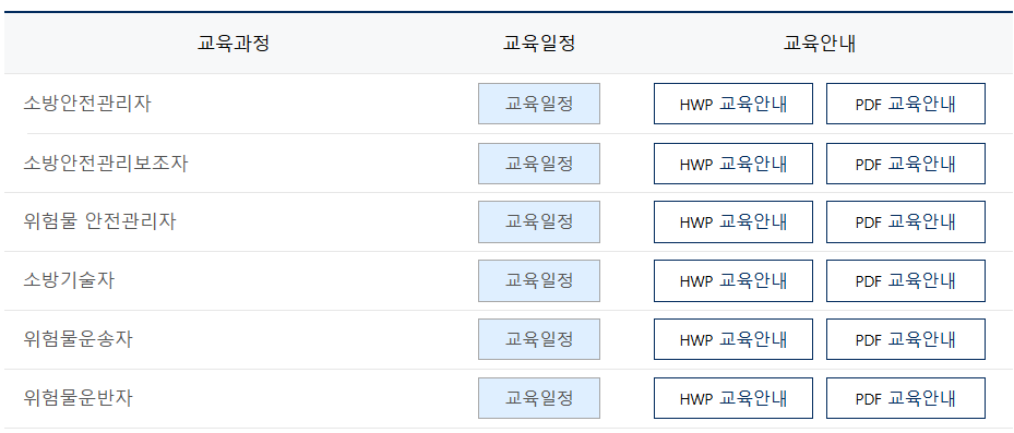 - 소방안전관리자 강습 과정: 소방안전관리자로서의 자격을 취득할 수 있는 필수 과정