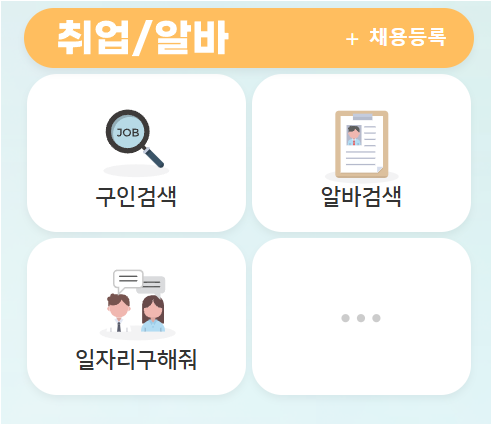'취업알바' 섹션에서는 지역 내 다양한 구인구직 정보를 확인할 수 있습니다. 직종별, 지역별로 필터링이 가능하여 원하는 일자리를 쉽게 찾을 수 있습니다. 또한, 상세한 근무 조건과 연락처 정보도 함께 제공되어 구직자들에게 유용합니다.