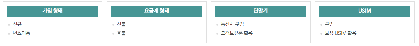 - 신규 가입: 새로운 전화번호로 요금상품에 가입합니다.