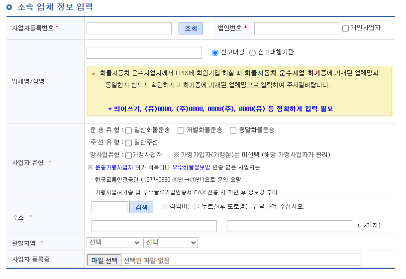 FPIS 화물운송 실적관리 시스템 : https://www.fpis.go.kr/userMain.do