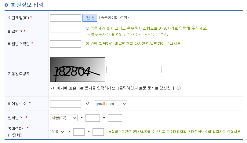 - 차량 정보, 운송 구간, 운송 화물 종류, 운송료 등을 입력합니다.