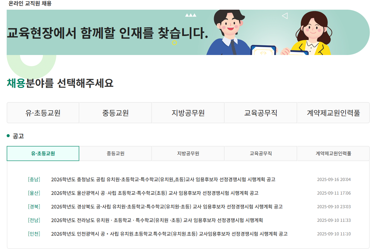 경상남도교육청에서 운영하는 온라인 교직원 채용 시스템은 경남 지역 내 공립학교 교사, 교육공무직, 기간제 교사 등 다양한 직종의 채용 공고를 제공하는 공식 플랫폼입니다. 이 시스템을 통해 채용 공고 열람은 물론, 지원서 작성과 제출, 서류 합격자 발표 및 최종 결과 조회까지 한 번에 확인할 수 있습니다.