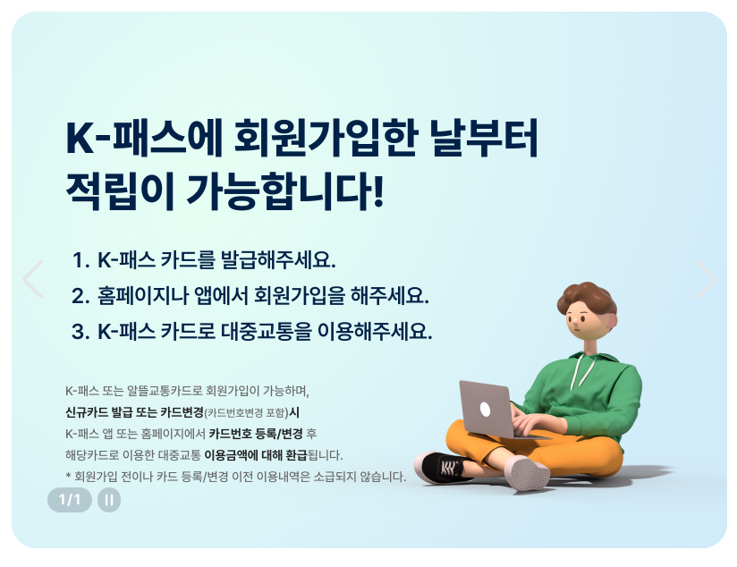 K패스는 청년들의 경제적 부담을 덜어주는 유용한 교통비 지원 서비스입니다. 교통비를 아끼고 싶은 청년이라면 지금 바로 K패스 홈페이지에 접속하여 신청해 보세요. 간편한 온라인 신청과 자동 환급 절차로 누구나 쉽게 이용할 수 있습니다.
