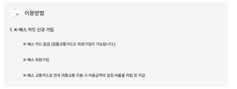 - 교통카드 등록: 본인 명의의 교통카드 번호를 입력하여 등록