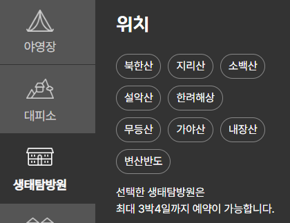 예약이 필요한 국립공원 시설 및 구간