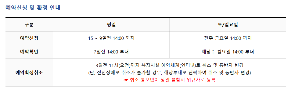- 이용안내 확인: 운영 시간, 휴장일, 이용 대상, 요금 등을 상세하게 안내합니다.