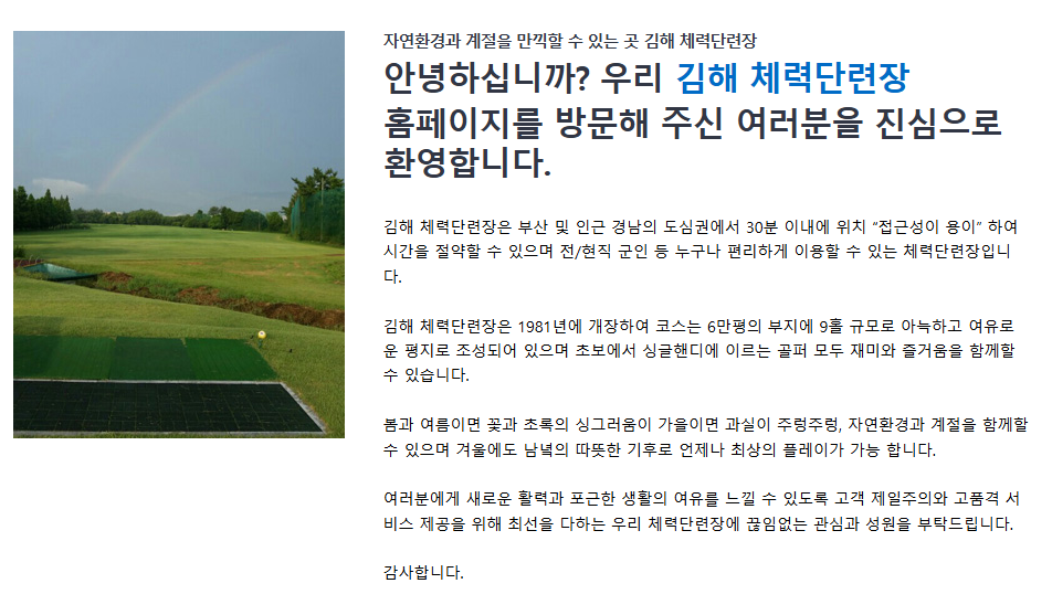 김해 지역에 위치한 김해공군체력단련장은 국군 장병 및 군무원을 비롯해 군 관련 가족과 일반인도 이용 가능한 체력단련 시설 골프장입니다. 오늘은 홈페이지 바로가기에 대해 알아보겠습니다.
