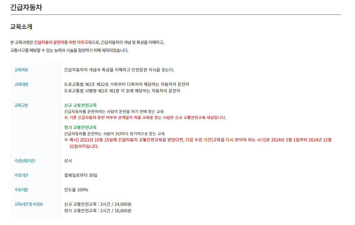 구급차, 소방차, 경찰차와 같은 차량을 운전하거나 운행 관리하는 담당자는 필수적으로 긴급자동차 교육을 이수해야 하며 법정의무교육입니다. 오늘은 홈페이지 바로가기에 대해 알아보겠습니다.
