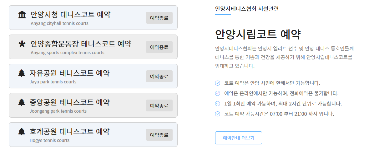 안양시 테니스협회 테니스 코트 예약 바로가기